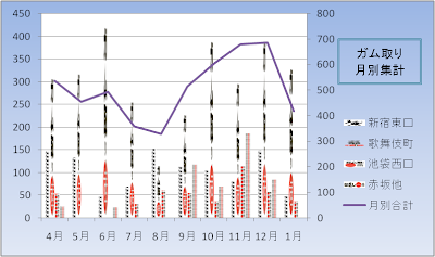 お正月を挟んで活動日数はわずか6日間でしたが、そこそこのガムを取ることが出来ました。