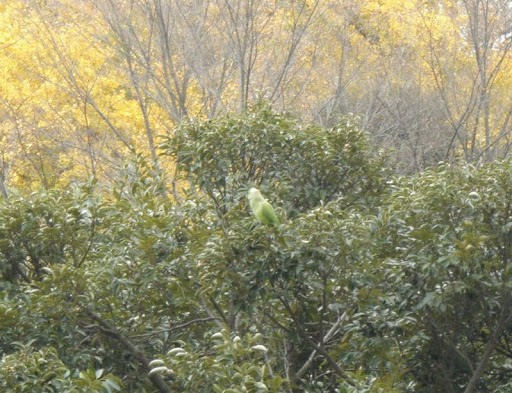 ガム掃除の後、会社へ帰ってきて窓の外を見たら、インコが4羽、隣の公園の木の上に居たので思わず写真に収めました。どこかの家のインコが逃げてきたのでしょうか?そしてインコが飛ぶのをはじめて見ました。